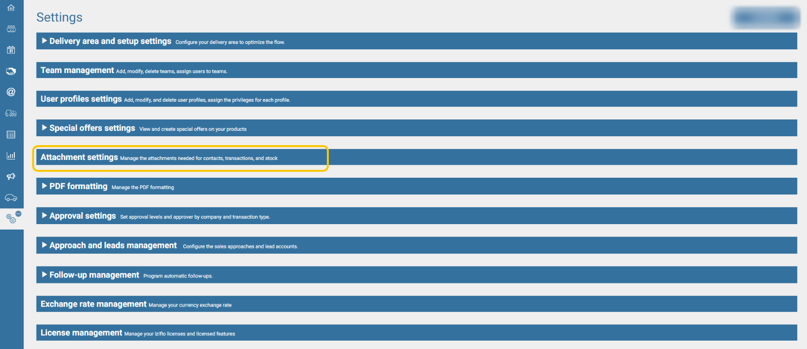 The attachment settings are also available from iziflo Service: