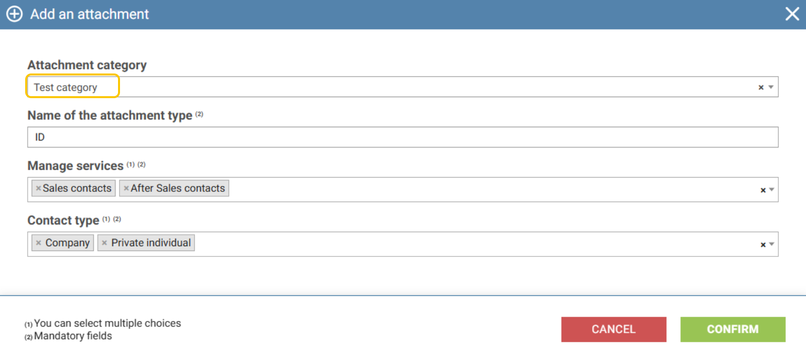 Note: An attachment can be assigned to several categories.